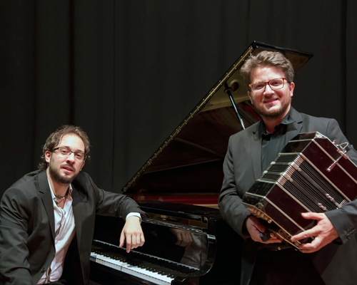 Defined as “an entire orchestra of two musicians”, well known in concert seasons and Tango Festivals all over Europe, they have collaborated for years with with famous dancers (Miguel Angel Zotto & Daiana Guspero, Sebastian Arce & Mariana Montes, Neri Piliu & Yanina Quiñones, Leo Calvelli & Eugenia Usandivaras, Ruben Celiberti), great musicians (Anna Serova, Roberto Molinelli, Ruben Peloni, Hyperion Ensemble, Ana Karina Rossi, Orchestra “Roma Sinfonietta”, Orchestra del Teatro Petruzzelli, Hugo Aisemberg), and with internationally renowned actors and directors (Lindsay Kemp, Sebastiano Lomonaco, Arnoldo Foà, Nestor Saied, Alessandro Haber).